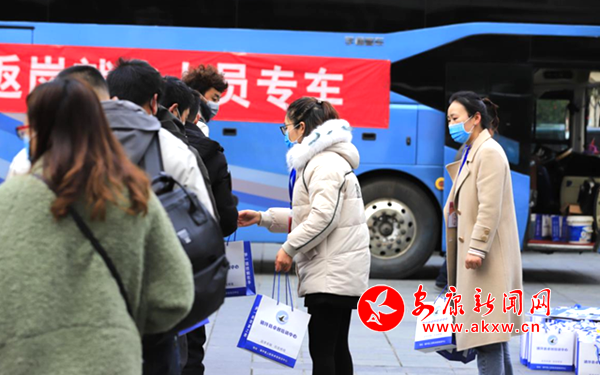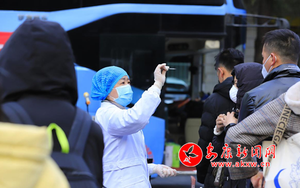 上午8點,帶著行李、佩戴口罩的返崗人員們齊聚在縣中心廣場。在該縣人社局工作人員的組織下,員工們有序地依次經(jīng)過體溫檢測、身份核實、個人健康狀況查驗、安全檢查,踏上返崗復(fù)工復(fù)業(yè)的旅程。