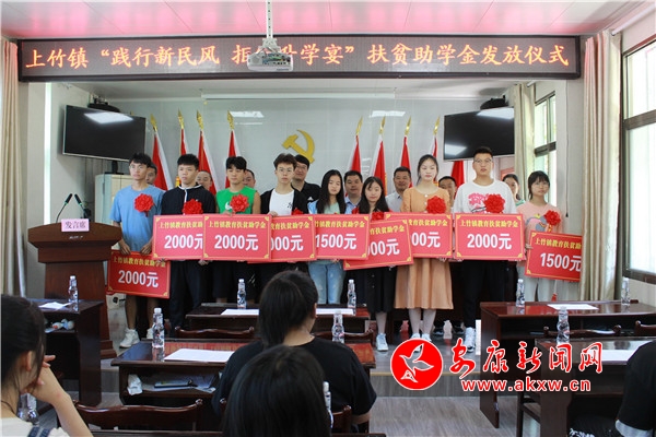 在升學(xué)禮上,宣讀了《上竹鎮(zhèn)2020年度“踐行新民風(fēng)•不辦升學(xué)宴”教育扶貧助學(xué)活動(dòng)實(shí)施方案》,按照一本2000元,二本1500元的標(biāo)準(zhǔn)為18學(xué)生發(fā)放了扶貧助學(xué)金,共計(jì)30500元。學(xué)生代表印想想發(fā)言,她表示,堅(jiān)決向“升學(xué)宴”“謝師宴”說不,自己會(huì)更加努力學(xué)習(xí),不負(fù)眾望,知恩感恩,做文明新風(fēng)的倡導(dǎo)者。學(xué)生家長(zhǎng)代表陳昌瓊在儀式上發(fā)言,將一如既往地弘揚(yáng)新民風(fēng),自覺抵制大操大辦、鋪張浪費(fèi),做移風(fēng)易俗的踐行者。在活動(dòng)現(xiàn)場(chǎng),學(xué)生家長(zhǎng)也倍感自豪,臉上洋溢著幸福的笑容,紛紛表示,黨委政府通過開展新穎的慶祝活動(dòng),給孩子們留下珍貴的記憶,既達(dá)到了革除陋習(xí)的目的,讓“里子”好,又讓百姓“面子”亮。