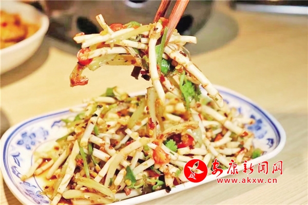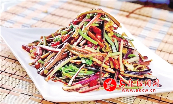 蕨菜 野生在林間,山野,松林內(nèi),是無任何污染的綠色野菜,不但富含人體需要的多種維生素,還有清腸健胃,舒筋活絡等功效;蕨菜使用前經(jīng)沸水燙后,在侵入涼水中去除異味,便可使用。經(jīng)過處理的蕨菜,口感清香滑潤,再拌以佐料,清涼爽口,是難得的上乘下酒菜。蕨菜還可以炒吃、涼拌,或加工成干菜等。