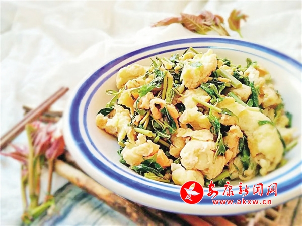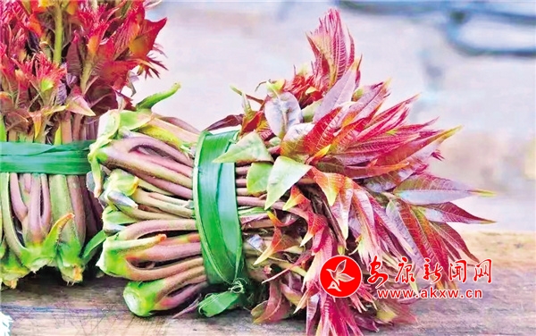 香椿 春天必吃的一道時令菜。香椿又叫做椿芽、春尖葉,香椿初發(fā)芽長葉的時候,掐香椿頭拿來做成香椿炒雞蛋吃,吃在嘴里脆嫩新鮮,味美爽口,齒頰俱芬。鎮(zhèn)坪的香椿響當當?shù)那嗄塾形,紅得發(fā)紫的葉芽,閃著點兒油光,看起來就很好吃。