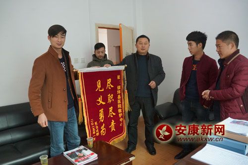 安康新網(wǎng)訊(通訊員 杜波兒 楊云波)1月19日下午,鎮(zhèn)坪縣醫(yī)院辦公室中一片喜氣,四位年青人感激地將一面寫著 “盡職盡責(zé)、見義勇為”的錦旗交到該院院長潘益山……