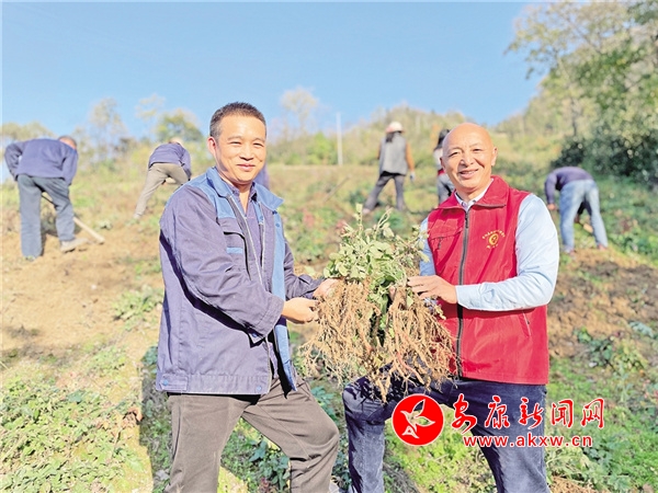 “真的太謝謝你們了,走,走,走,去我屋里頭喝口水,下午我炒兩個菜,喝兩杯再回去。”金漢忠熱情地招呼著前來幫他采收藥材的志愿者。“今天就不了,趁著天氣好,公司基地里的丹參也要趕緊挖,改天來。”說話間,遠(yuǎn)教技術(shù)員余小松帶著隊伍背著工具往公司藥材種植基地趕去。