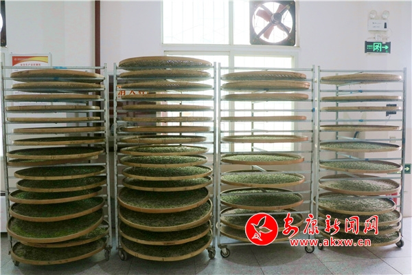 與此同時,洄水鎮(zhèn)境內(nèi)的數(shù)十家茶企(廠)也在加班加點趕制明前茶。在科宏茶業(yè)有限公司生產(chǎn)車間,制茶師傅有條不紊地操作著專業(yè)化設備,按照殺青、揉捻、烘焙等流程制作新茶,濃郁的茶香彌漫整個車間。殺青機、揉捻機、烘干機等機械代替了傳統(tǒng)手工,生產(chǎn)效率更高,茶葉品質(zhì)也更加穩(wěn)定。