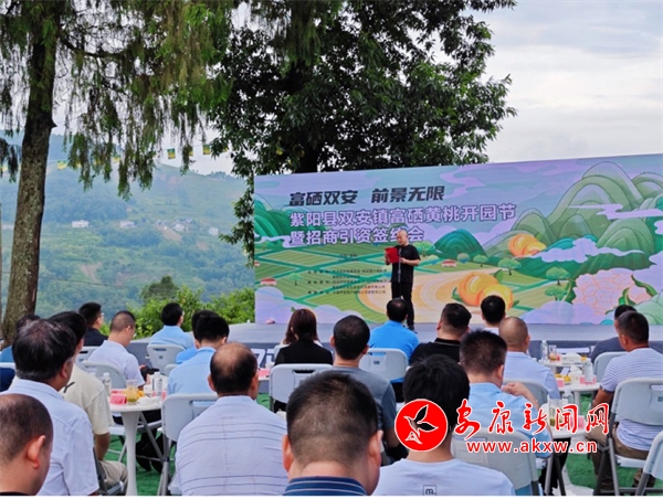 本網(wǎng)訊(通訊員 汪玉梅)7月6日,紫陽(yáng)縣雙安鎮(zhèn)的富硒黃桃開園節(jié)暨招商引資簽約會(huì)在白馬村舉行,來(lái)自縣內(nèi)外的游客嘉賓們,共同見證了這場(chǎng)夏日盛事。