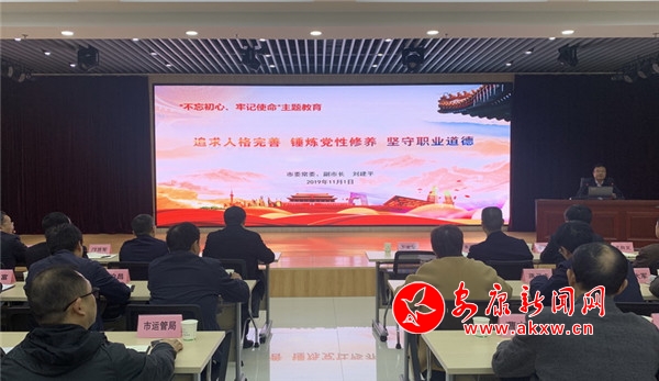 本網(wǎng)訊 11月1日下午,市委常委、副市長劉建平結(jié)合“不忘初心、牢記使命”主題教育,以“追求人格完善、錘煉黨性修養(yǎng)、堅(jiān)守職業(yè)道德”為題,為分管部門黨員干部講黨課。市交通運(yùn)輸局、市衛(wèi)健委、市醫(yī)保局及下屬單位共70余名黨員干部現(xiàn)場聆聽。