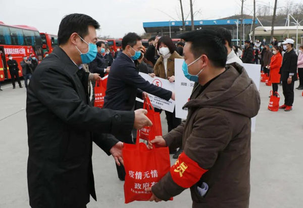 郭青在歡送儀式講話中指出,受新冠肺炎疫情影響,很多企業(yè)一度停工停產(chǎn)、復(fù)工延長,加之省際客運(yùn)班線尚未完全開通,致使我市大量外出務(wù)工人員無法及時(shí)返崗就業(yè)。群眾的揪心事就是政府的操心事,群眾的困難就是政府的責(zé)任,通過開通點(diǎn)對點(diǎn)直達(dá)包車等方式,使廣大外出務(wù)工人員能夠放心外出、安全返崗,早一點(diǎn)實(shí)現(xiàn)致富增收,家人少一點(diǎn)路途牽掛。
