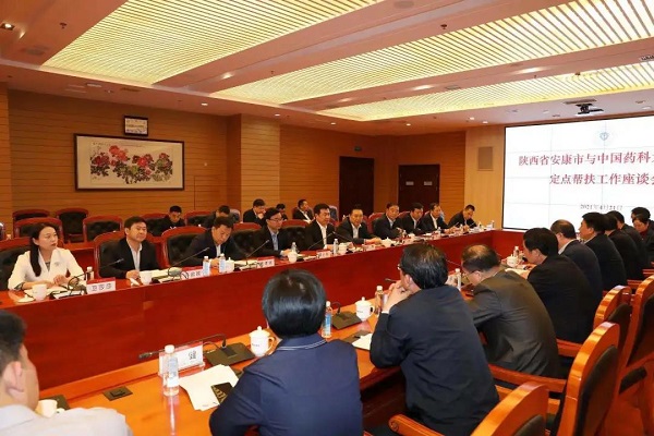 中國(guó)藥科大學(xué)黨委常委、副校長(zhǎng)陸濤對(duì)郭青一行表示熱烈歡迎。他表示,中國(guó)藥科大學(xué)將繼續(xù)深化拓展定點(diǎn)幫扶成果,充分發(fā)揮人才、科研、教育等優(yōu)勢(shì),立足安康資源稟賦,不斷健全幫扶機(jī)制、優(yōu)化幫扶方式,積極搭建校地合作、校企合作平臺(tái),加快推進(jìn)中藥材產(chǎn)業(yè)科技創(chuàng)新和成果轉(zhuǎn)化,實(shí)現(xiàn)優(yōu)勢(shì)互補(bǔ)、互利共贏。同時(shí),將圍繞安康的現(xiàn)實(shí)需求深入研究商討細(xì)化方案,推動(dòng)各項(xiàng)幫扶措施盡早落地落實(shí),在新征程中開(kāi)創(chuàng)幫扶合作新局面。