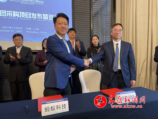 進博會首日,楊淼出席“陜西省交易團采購項目發(fā)布暨簽約儀式”并見簽。漢陰縣人民政府與螞蟻區(qū)塊鏈科技(上海)有限公司簽訂合作協(xié)議,螞蟻區(qū)塊鏈科技(上海)有限公司將與漢陰縣開展農(nóng)業(yè)產(chǎn)業(yè)全面深度合作,簽約打造“漢陰數(shù)鄉(xiāng)鏈”,共同探索開展數(shù)字鄉(xiāng)村建設(shè)規(guī)劃,推進漢陰縣農(nóng)業(yè)農(nóng)村現(xiàn)代化和農(nóng)業(yè)經(jīng)濟高質(zhì)量發(fā)展。