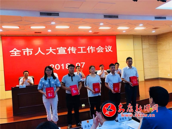 會上對旬陽、石泉、鎮(zhèn)坪、漢陰、寧陜縣人大常委會5個“人大宣傳工作先進單位”,對周偉等18名“人大新聞宣傳先進工作者”和“13屆安康人大新聞獎”1件特等獎、5件一等獎、10件二等獎、15件三等獎獲獎作品作者進行通報表彰;旬陽等5個縣作了交流發(fā)言。