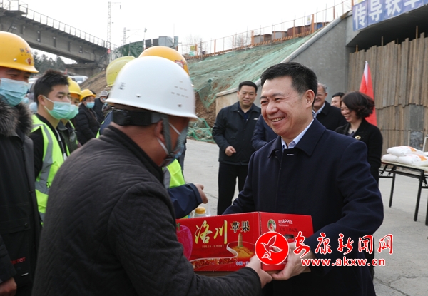 郭青一行先后深入新樂祥襪業(yè)、堯柏新型環(huán)保建材產(chǎn)業(yè)園、北環(huán)線勞動水庫大橋引道路基綜合管廊開挖點(diǎn)和關(guān)廟涉鐵通道口等項目建設(shè)現(xiàn)場,聽取工程進(jìn)展情況匯報,看望慰問就地過年員工,向他們致以節(jié)日問候和新春祝福。郭青指出,各重點(diǎn)項目建設(shè)者來自全國各地,為了疫情防控和項目建設(shè)需要,堅守崗位、就地過年,充分體現(xiàn)了“舍小家、顧大家”的奉獻(xiàn)精神。各建設(shè)單位要在抓好安全施工的同時,多關(guān)心關(guān)愛在崗職工,把春節(jié)期間的生產(chǎn)生活安排好,確保大家安心搞建設(shè)、舒心過新年。
