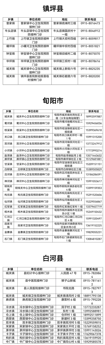 答:目前安康各鄉(xiāng)鎮(zhèn)、社區(qū)預(yù)防接種門診均可接種新冠疫苗,具體接種點位附后。