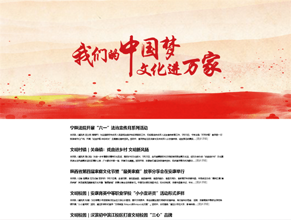 安康新聞網(wǎng)站普及優(yōu)秀文化,傳播科學(xué)知識,提升文化自信,開設(shè)“網(wǎng)絡(luò)中國節(jié)”多個傳統(tǒng)節(jié)日系列專題,根據(jù)節(jié)點設(shè)計發(fā)布海報、H5,開展線上活動。挖掘安康傳統(tǒng)文化,展現(xiàn)地方特色,組織承辦的“國風(fēng)·漢江辭匯”文化品牌活動,演出優(yōu)秀詩詞吟唱,對外精彩展示了以漢水文化為靚麗底色的安康地域文化之魂,全方位呈現(xiàn)了漢唐風(fēng)韻的藝術(shù)魅力和文化底蘊。