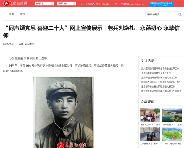 安康新聞網(wǎng)始終堅持傳達正確立場、觀點、態(tài)度,持續(xù)做好正能量典型宣傳,做有態(tài)度、有溫度的新聞精品,發(fā)布如《“同聲頌黨恩 喜迎二十大”網(wǎng)上宣傳展示 | 老兵劉煥禮:永葆初心 永擎信仰》《旬陽老黨員收集千余件紅色藏品》《活出尊嚴的120個生命》等優(yōu)質(zhì)稿件。