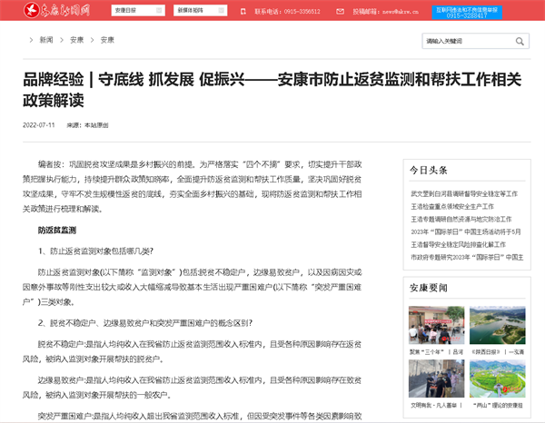 2022年,安康新聞網(wǎng)站準確刊播政務(wù)消息,保證了政務(wù)消息、惠民政策消息及時準確地傳播。發(fā)揮黨媒資源優(yōu)勢,準確闡釋解讀市委、市政府的重要決策和惠民政策,刊出《我市9部門解讀宣傳9類44項政策》《守底線 抓發(fā)展 促振興——安康市防止返貧監(jiān)測和幫扶工作相關(guān)政策解讀》《安康出臺公積金階段性支持政策為企業(yè)和職工紓困解難》,從群眾關(guān)切入手,提升媒體服務(wù)質(zhì)量和為民服務(wù)意識。同時,搭建溝通平臺、反映百姓呼聲,及時發(fā)布動態(tài)信息以及醫(yī)療、出行、生活、辟謠等公共服務(wù)內(nèi)容,發(fā)揮主流媒體凝聚人心、推動發(fā)展、促進和諧的作用。