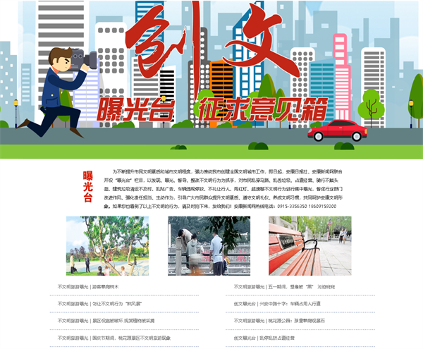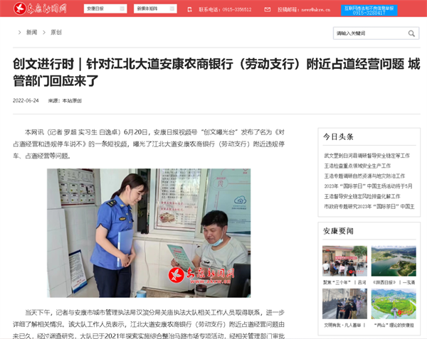 安康新聞網(wǎng)履行媒體輿論監(jiān)督職能,聚焦民生熱點,開辦《創(chuàng)文曝光臺》輿論監(jiān)督專欄,對不文明現(xiàn)象進行曝光揭露,發(fā)布批評性報道60余篇,微信視頻號采寫制作曝光類視頻稿件10余件,為提升市民文明素質(zhì)和城市文明程度,貢獻媒體力量。同時積極開展調(diào)查性報道,追蹤事件真相,發(fā)布《創(chuàng)文進行時|針對江北大道安康農(nóng)商銀行(勞動支行)附近占道經(jīng)營問題 城管部門回應(yīng)來了》等一批原創(chuàng)新聞,反映群眾呼聲,推進問題解決,體現(xiàn)地方黨媒的責(zé)任與擔(dān)當(dāng)。