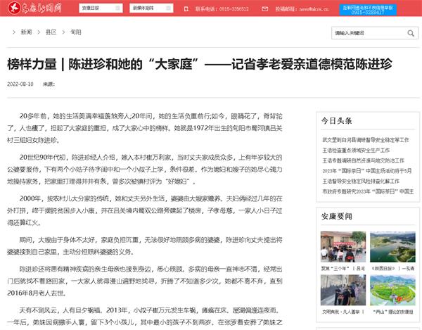 堅持以人為本報道理念,充分凸顯人文精神。報道《榜樣力量 | 陳進珍和她的“大家庭”——記省孝老愛親道德模范陳進珍》《安康市第三屆自強不息道德模范王庭德開展勵志宣講報告會》《孫自立:自強同奔共富路》等,啟迪思想,溫潤心靈,詮釋真善美。