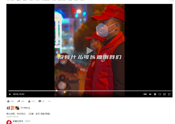 利用視頻號、抖音、微信等矩陣平臺,采編發(fā)布《“下”到一線 “沉”出擔(dān)當(dāng)》《干部下沉“疫線” 志愿服務(wù)綻光彩》《致敬!堅守防疫一線的最美逆行者》等一批鮮活的現(xiàn)場短視頻新聞20余件,生動展示抗疫一線的管控動態(tài)、志愿服務(wù)、文明實踐以及廣大干群奮戰(zhàn)一線的典型事跡等;同時精心策劃制作《微火成炬 向光而行》《致敬“逆行者” 安康加油!》《眾志成城 攜手抗疫——市民說防疫》等宣傳片,及其他科普性短視頻8件,文圖聲視融合,發(fā)揮跟帖評論作用,開展轉(zhuǎn)發(fā)、評論、點贊等微互動,積極營造強信心、暖人心、聚民心的網(wǎng)上輿論氛圍,凝聚起共克時艱的精神動力。