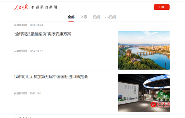 安康新聞網(wǎng)分別入駐人民網(wǎng)人民視頻、央視新聞等平臺,不斷推送原創(chuàng)優(yōu)質(zhì)內(nèi)容,《“全球減貧最佳案例”再添安康方案》《我市將組團參加第五屆中國國際進口博覽會》等一批稿件,極大地提升了安康城市形象,促進對外宣傳;二十大召開前后,發(fā)布推送中央媒體、省級權(quán)威媒體最新報道,網(wǎng)站運營的安康日報微信視頻號轉(zhuǎn)載推送中國共產(chǎn)黨國際形象網(wǎng)宣片《CPC》等中央媒體重要視頻10余件,傳遞安康好聲音,講好中國故事,促進文化交流。