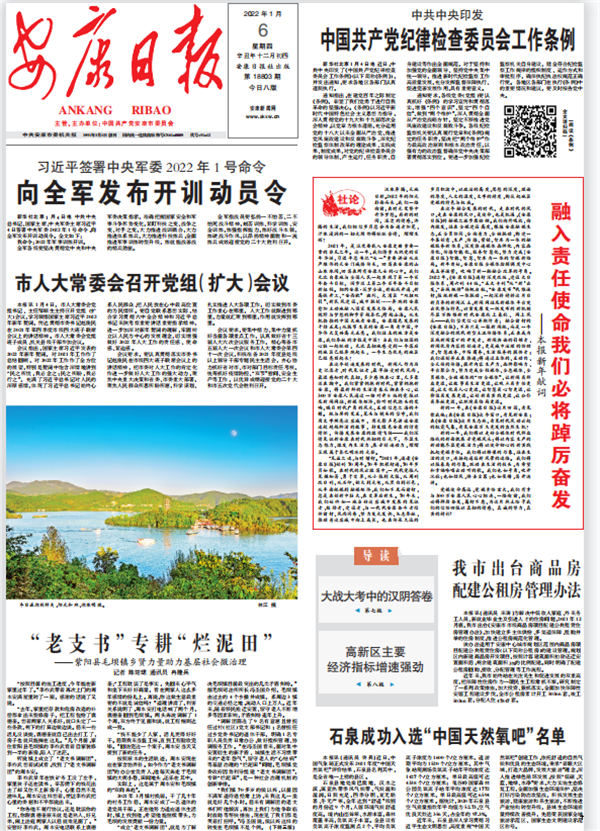 (2022年1月6日安康日報01版“融入責(zé)任使命我們必將踔厲奮發(fā)”)