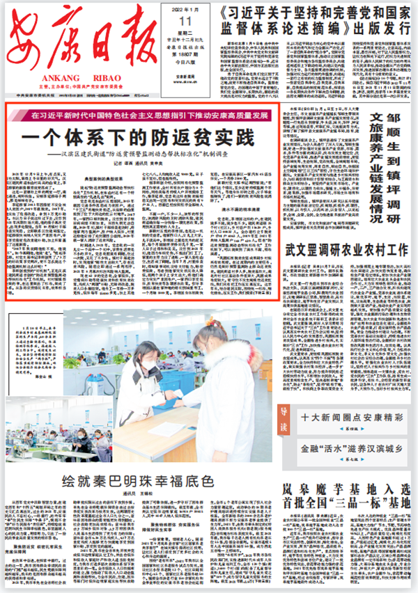 (2022年1月11日安康日報01版“一個體系下的防返貧實踐”)