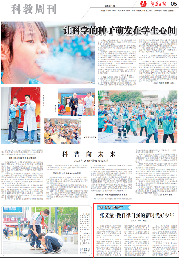 (2022年9月29日安康日報05版“讓科學(xué)的種子萌芽在學(xué)生心間”)