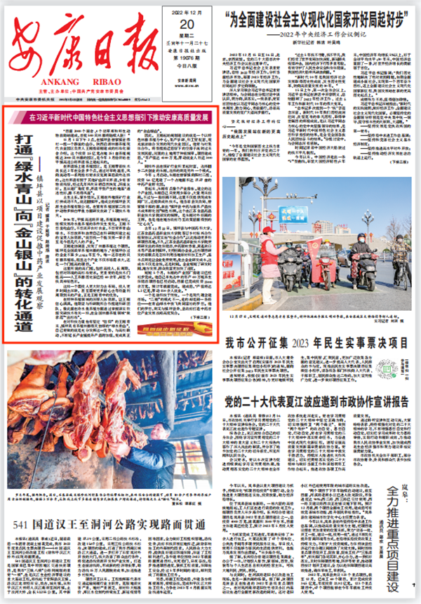 (2022年12月20日安康日報01版“打通“綠水青山”向“金山銀山”的轉(zhuǎn)化通道”)