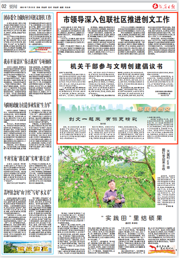 (2022年7月23日安康日報02版“市領(lǐng)導(dǎo)深入包聯(lián)社區(qū)推進創(chuàng)文工作”)