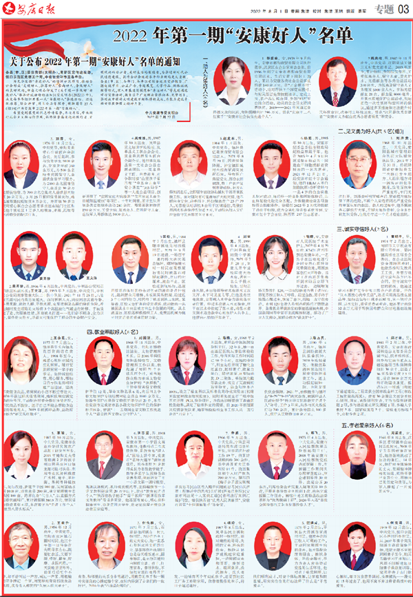 (2022年8月1日安康日報03版“2022年第一期‘安康好人’名單”)
