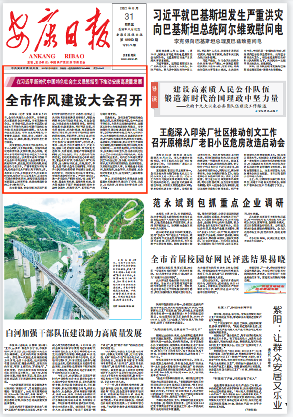 (2022年8月31日安康日報01版“全市作風(fēng)建設(shè)大會召開”)