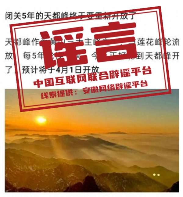 謠言:黃山天都峰4月1日結束輪休對外開放?