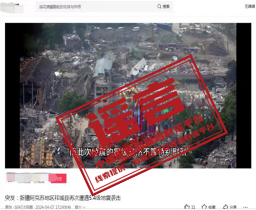 詳情:4月7日、8日,新疆阿克蘇地區(qū)拜城縣先后發(fā)生5.4、5.1級地震。震中位于無人區(qū),目前暫未收到人員傷亡或財產(chǎn)損失報告,當(dāng)?shù)赝ㄓ、供電、交通正常。但有部分自媒體為博眼球、蹭流量,利用AI智能技術(shù)等手段拼湊網(wǎng)絡(luò)舊圖,發(fā)布拜城地震不實圖文、音視頻等信息,嚴(yán)重誤導(dǎo)網(wǎng)民。阿克蘇地區(qū)互聯(lián)網(wǎng)信息辦公室提醒,對在網(wǎng)上蓄意編造、傳播散布謠言,擾亂公共秩序等違法行為,網(wǎng)信部門將會同公安機關(guān)依法嚴(yán)厲打擊。(來源:“新疆網(wǎng)絡(luò)辟謠”微信公眾號)