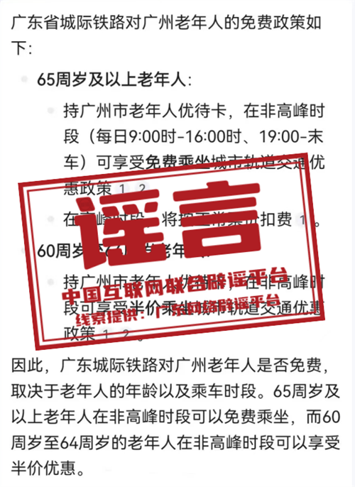 謠言:持廣州市老年人優(yōu)待卡可免費乘坐城際列車?