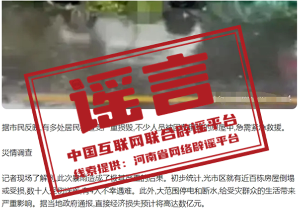 真相:近日,有網(wǎng)民散布消息稱,“信陽市光山縣狂風暴雨致多人死亡”。經(jīng)光山縣應急管理局核實,無人因災傷亡,相關(guān)信息均為謠言。請廣大網(wǎng)民不要輕信或隨意轉(zhuǎn)發(fā)來源不明、未經(jīng)證實的信息,共同營造清朗網(wǎng)絡(luò)環(huán)境。(來源:河南省網(wǎng)絡(luò)辟謠平臺)