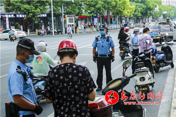 8 月1 日,交警中隊(duì)派員在城區(qū)十字路口,檢查違法違紀(jì)車輛。(李春江)