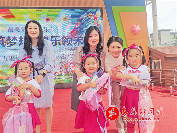 漢濱區(qū)稅務(wù)局為五里鎮(zhèn)幼兒園的小朋友送去書(shū)包等文具慰問(wèn)品。陳榮斌 攝