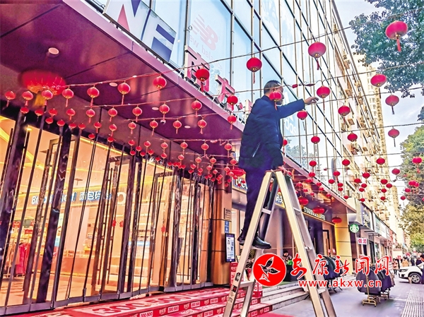 我市中心城區(qū)的商戶進行春節(jié)景觀亮化,讓市民提前感受春節(jié)的氛圍。陳德模攝