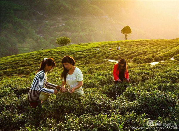 日上三竿,帶著新采摘的嫩葉走進茶農新居,好客主人必是要捧出好茶招待,掬一捧屋后的山泉水,燒沸晾至八九成熱,水壺高高提起,水注一線,向著客人鳳凰三點頭,茶在熱流中凡翻滾,被濃縮收藏的春意也在激蕩中被喚醒,輕緩的舒展著腰肢,一枚枚嫩芽恢復了清純,如同天鵝湖畔的仙子隨杯中的水流旋轉跳動,直到靜水曲終,那蘊藏在葉脈芽尖的漫山春意亦緩緩釋放出來。押上一口一縷清香沁入肺腑,那是女兒十八春的味道,任你墻高門緊,早已飄出十里八鄉(xiāng)了,這樣的季節(jié)怎能不上茶山不踏春呢?