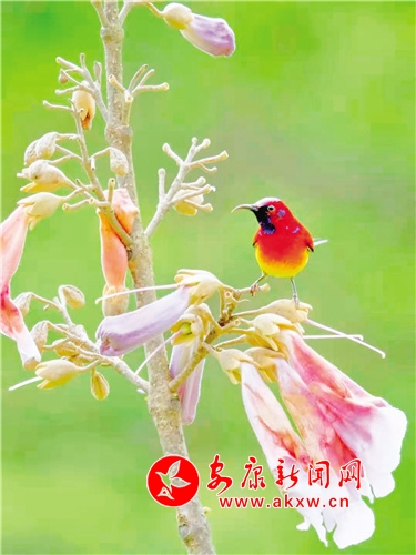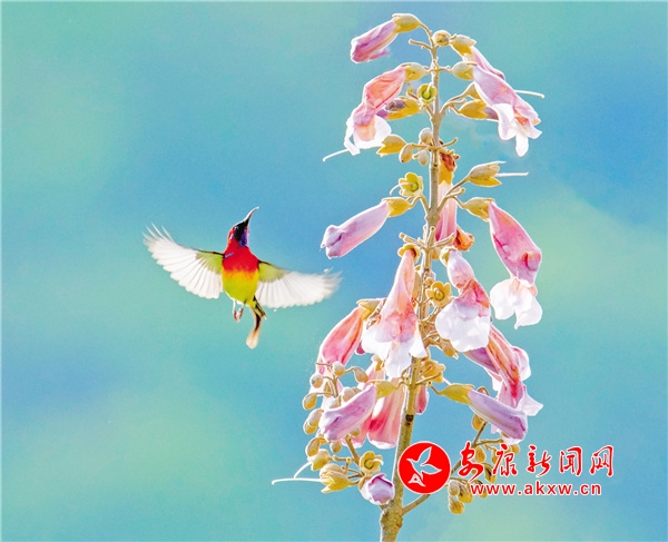 桐花鳳,是經(jīng)常出現(xiàn)在古代文人墨客筆下的吉祥鳥。但因很多人從未見過桐花鳳,遂將桐花鳳與綠毛幺鳳等混淆起來。經(jīng)今人翔實(shí)考證,才證實(shí)古“桐花鳳”就是現(xiàn)今的“太陽鳥”。太陽鳥象征著祥瑞、吉祥和諧、鳳凰齊飛、太陽重升、身化火焰而使人間恢復(fù)光明。它還是熱愛光明、追求光明、獻(xiàn)身光明的象征。太陽鳥也是太陽崇拜和鳥崇拜相結(jié)合的產(chǎn)物。太陽鳥世界共有14種,中國有6種,被譽(yù)為“東方的蜂鳥”“月下老人”,再加上太陽鳥的寓意如此之好,太陽鳥一直受到人們的喜愛與青睞。(圖文 張東風(fēng) )