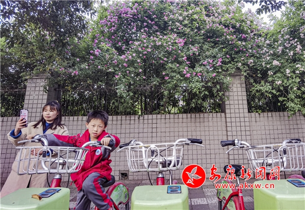 近日,安康東堤外的漢寧宮院墻上的薔薇花盛開,成了安康的網紅打卡地,每天吸引了數百人到此賞花拍照。(圖文/陳德模)