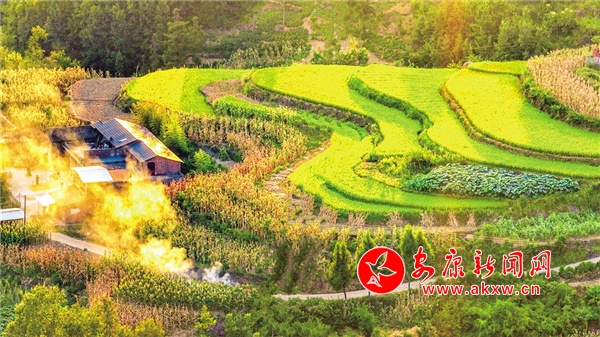 初秋,漢陰縣漩渦鎮(zhèn)全鎮(zhèn)的11666畝稻田一片金黃,成為一道道亮麗的風景線。皮勇維 攝