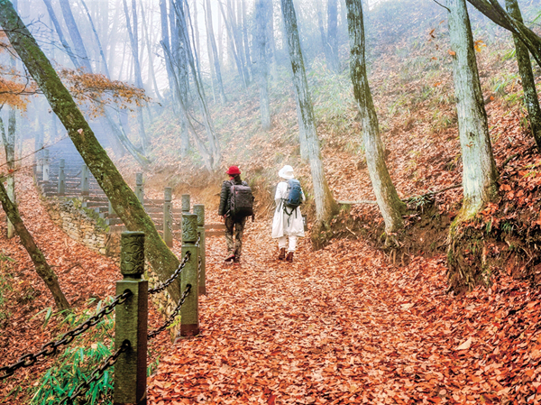 入冬之后,石泉云霧山鬼谷嶺景區(qū)的樹葉紅了,登上山頂遠(yuǎn)眺群山,疊翠流金,云霧縹緲,宛如人間仙境。