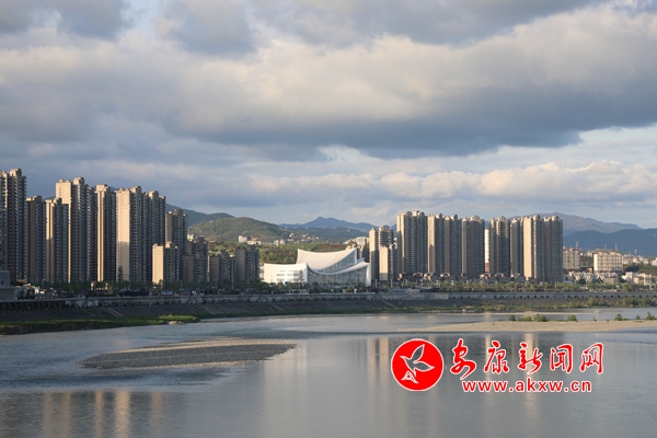 節(jié)逢清明,雨霽初晴。落日熔金,清江如練。天藍(lán)若海,流云似鯨。畫中城,城中畫,兩岸青山翠欲滴 ,春色滿城等你來(lái)。ㄓ浾 劉淵) fUE安康新聞網(wǎng)