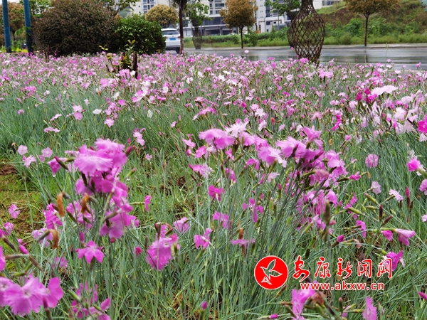 最美人間四月天。4月22日,陰雨綿綿,漢陰縣花月灣迎賓公園步道邊月季花、蝴蝶花、石竹子花綻放,在蒙蒙細(xì)雨的滋潤(rùn)下,格外妖嬈,市民漫步其中,悠然自得。(通訊員 林愛銘)HLW安康新聞網(wǎng)
