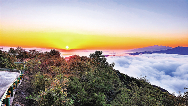 冬日清晨,石泉縣城關鎮(zhèn)楓樹村壯美的日出云海。楊勇 攝