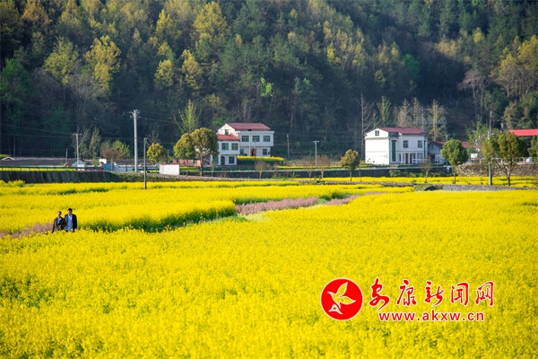 近日,石泉縣中池鎮(zhèn)境內(nèi)的油菜花競相開放,金黃的油菜花田與村落民居交相輝映,一幅田園風(fēng)景畫惹人陶醉。儲招賢 攝