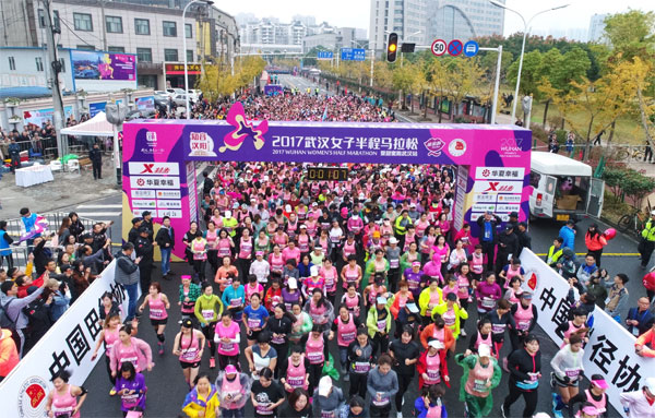 人民網(wǎng)北京11月13日電 11月12日上午8點(diǎn),2017武漢·知音漢陽女子半程馬拉松暨甜蜜跑武漢站(以下簡稱“武漢女子半程馬拉松”)在墨水湖漢陽區(qū)政府前鳴槍起跑。