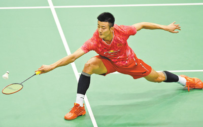 11月22日,中國(guó)選手諶龍?jiān)?017香港羽毛球公開(kāi)賽男單比賽中。