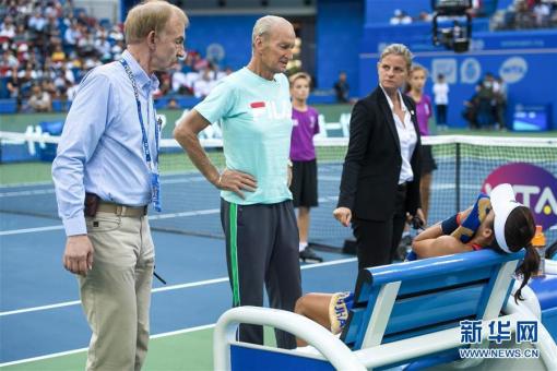 9月28日,王薔(右一)在比賽間隙因傷而感到痛苦。 新華社記者熊琦攝 新華社武漢9月28日電(記者喻珮)28日傍晚,2018武漢網(wǎng)球公開(kāi)賽半決賽焦點(diǎn)戰(zhàn)之一在中國(guó)姑……