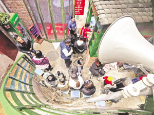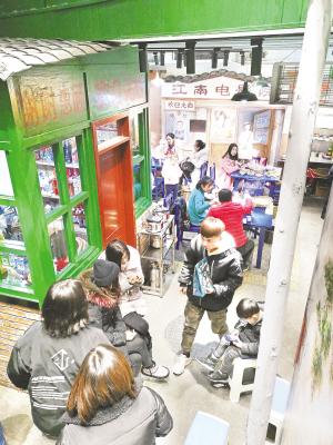 安康新聞網(wǎng)訊(記者 吳單 潘潤(rùn)生 )搪瓷碗吃飯、搪瓷盤子盛菜、搪瓷缸喝酒、鋼筋鍋煮串串,不禁讓人想起八九十年代老城麻辣燙。木桌椅、木門窗、公用電話亭、江南電影院、投幣式游戲機(jī)、高音喇叭,“馬路邊邊”用情景設(shè)置還原八九十年代的生活場(chǎng)景,勾起九十年代記憶中的老情懷,老稠酒店、老蒸面店、老夜市攤、老電影院、老理發(fā)店,一畫成一景。