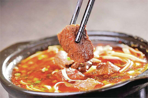 嵐皋砂鍋是嵐皋的快餐,也是一道獨(dú)特的特色小吃。嵐皋常有的砂鍋有排骨砂鍋、雞肉砂鍋、牛肉砂鍋、肥腸砂鍋、三鮮砂鍋、麻什砂鍋、水餃砂鍋、土豆粉砂鍋等。嵐皋砂鍋多就地取材,湯濃而不膩,味淡而不薄,宜飯宜酒,有葷有素。素菜有豆腐、豆芽、海帶、香菇、木耳、小青菜等,葷菜有排骨、雞塊、肥腸等,因一缽便有了一席的“世界”而被上班族所青睞,如今已是嵐皋小吃“主力”。
